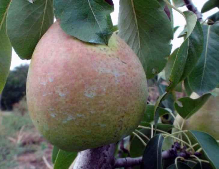 Fructe: mari (160–220 g), în formă clasică de pară, cu coaja galben-verzuie care se închide ușor la maturitate; pulpa alb-gălbuie, suculentă și foarte aromată.
