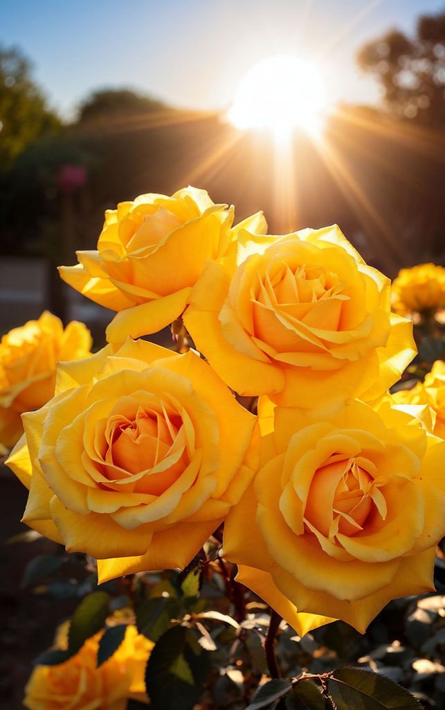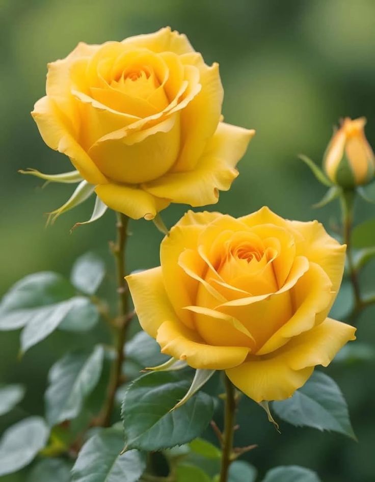 Flori mari, galben intens, cu formă clasică de trandafir teahibrid.